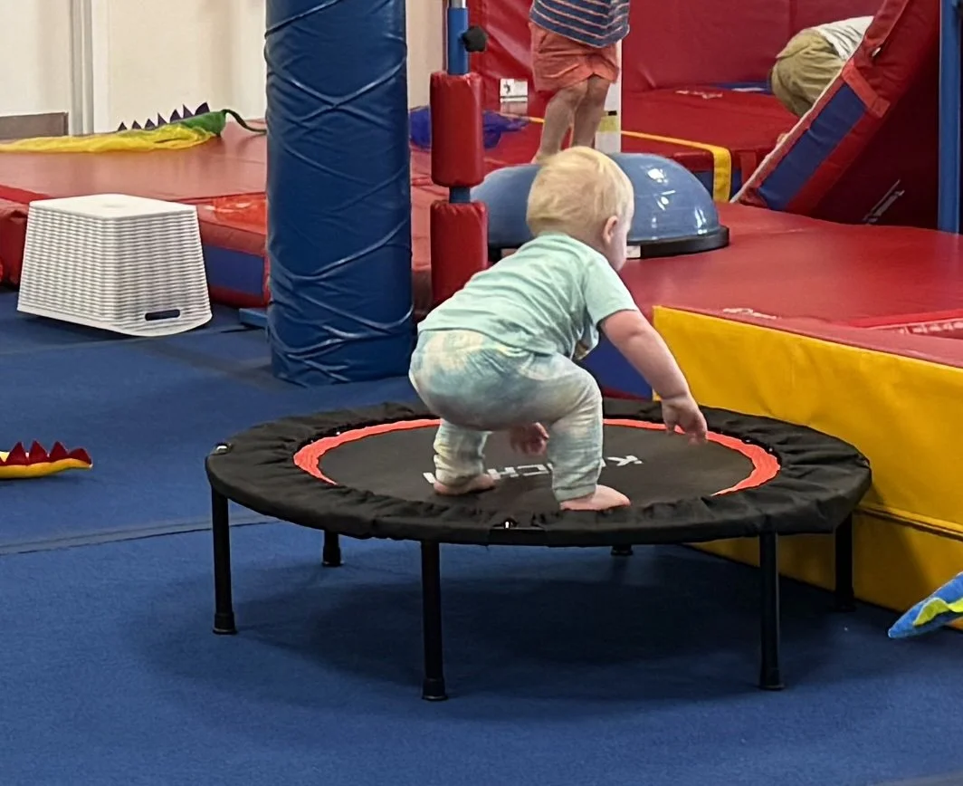 This is the class all about meeting other caregivers and their little ones. Parents, grandparents, aunts, uncles, nannies, and other trusted adults are welcome! Your tiniest kiddo is learning about the world around them and also their own bodies: reaching, grasping, rocking, rolling, pushing up and making those first strides toward crawling and walking are all more fun in the gym with friends!